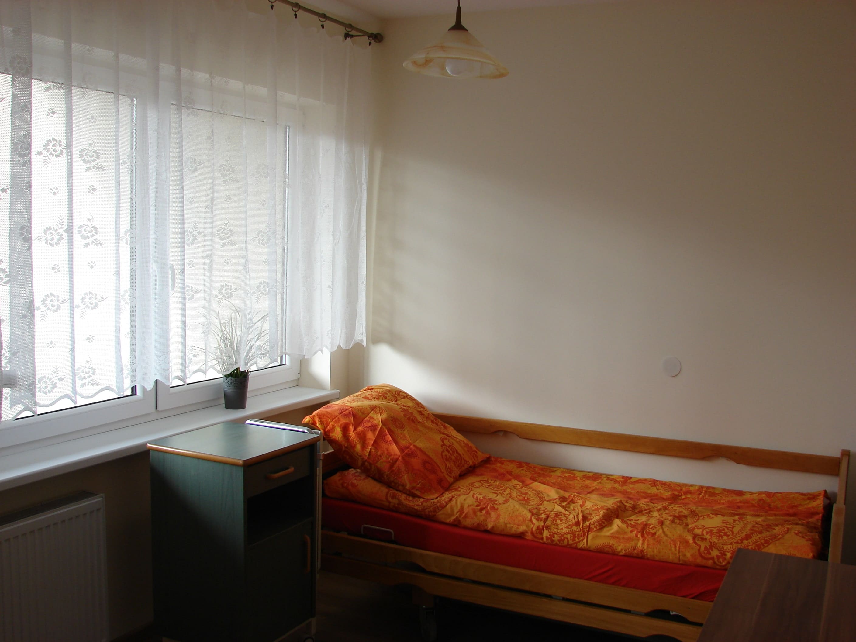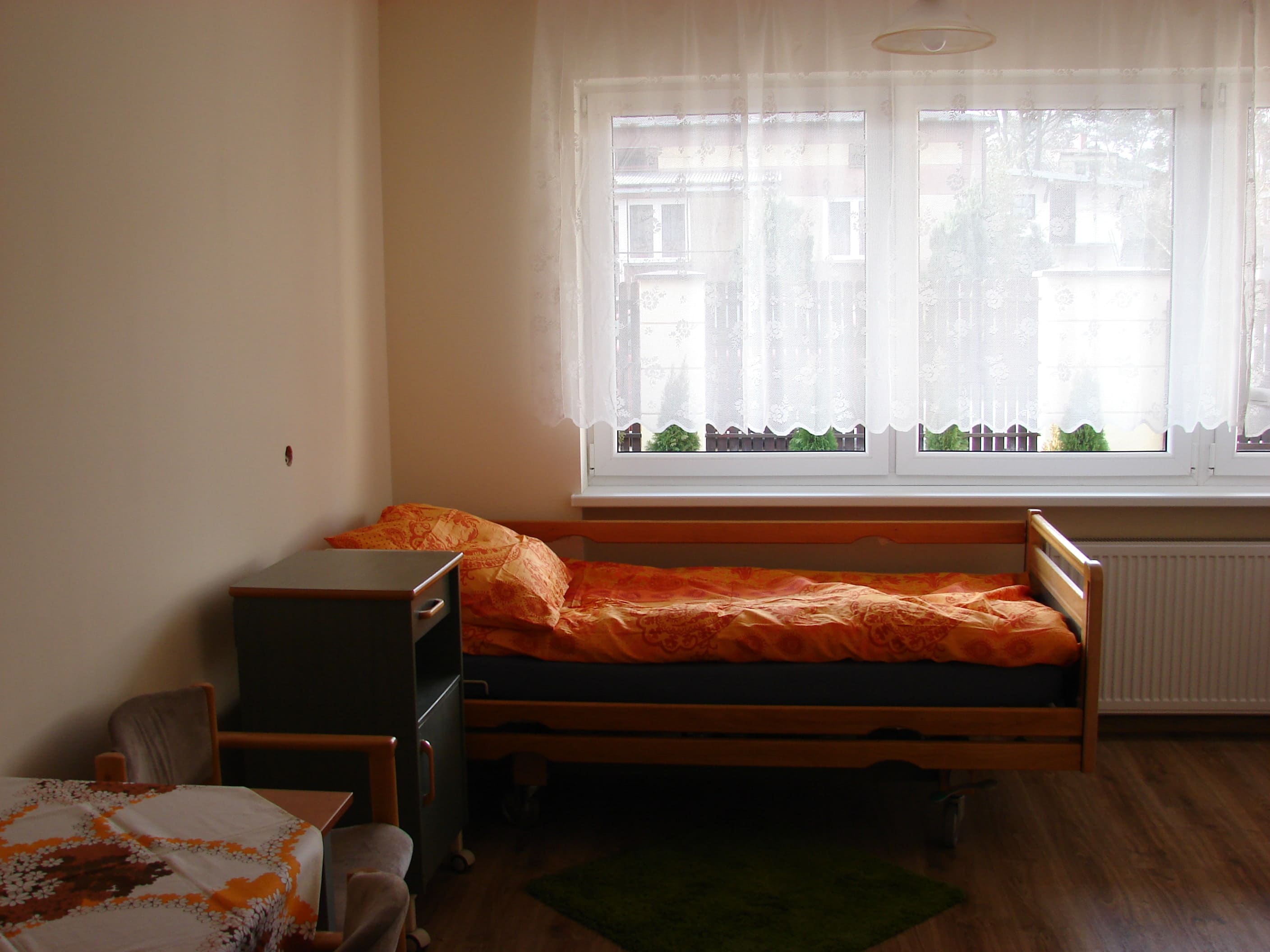 Oferujemy wygodne pokoje 1-, 2- i 3-osobowe z łazienkami, dostosowane do potrzeb osób starszych z niepełnosprawnością.